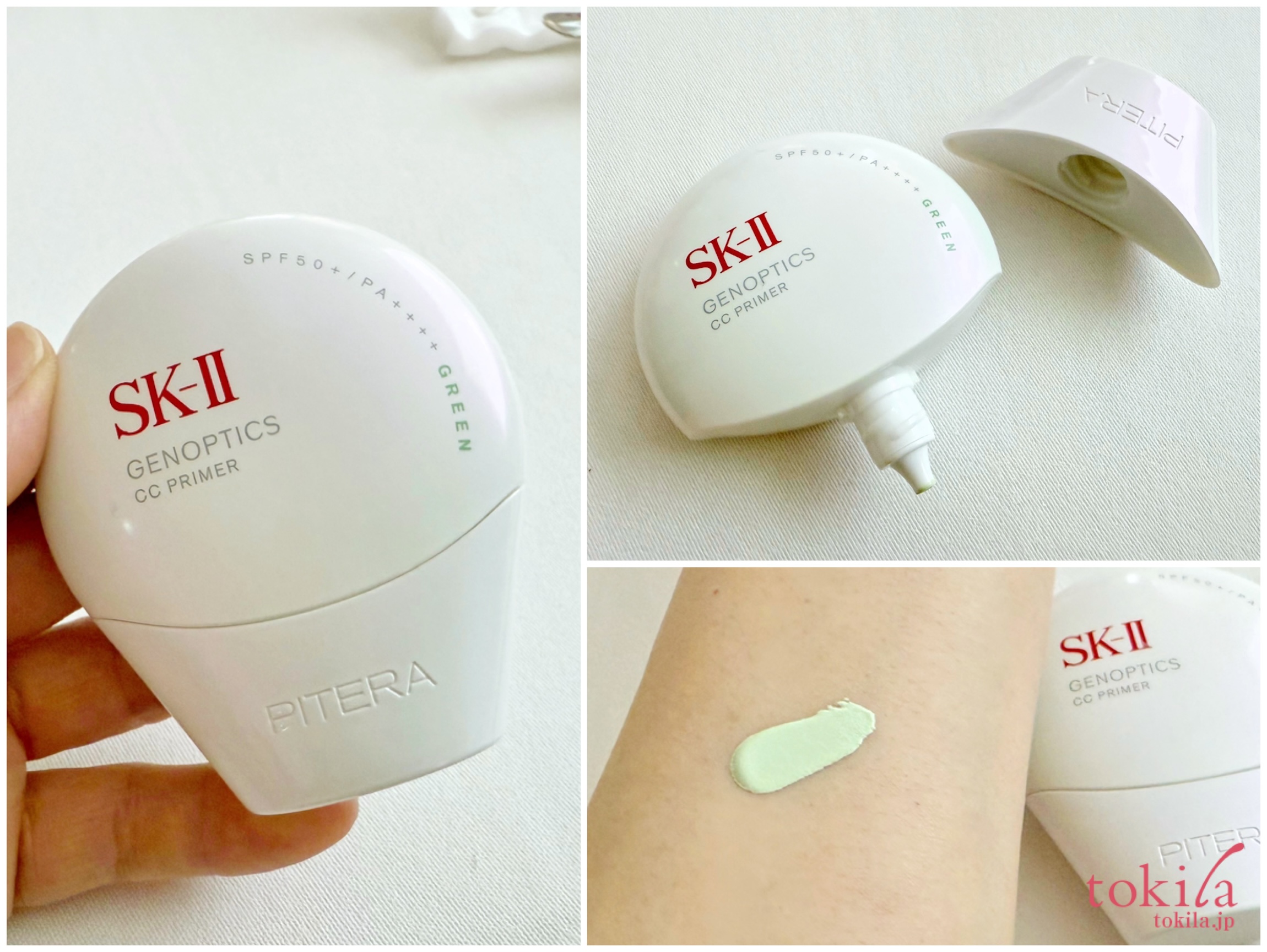 3品目はグリーンが気になるこちら。保湿、明るさ、ハリ、UVカットに下地&ナチュラルカバーという5つの効果を1本に凝縮しただけでなく、持ち運びにも便利なCCプライマー。既存の2色に加えて、近年、肌の赤み悩み人が増えていることから、グリーンが新登場します。