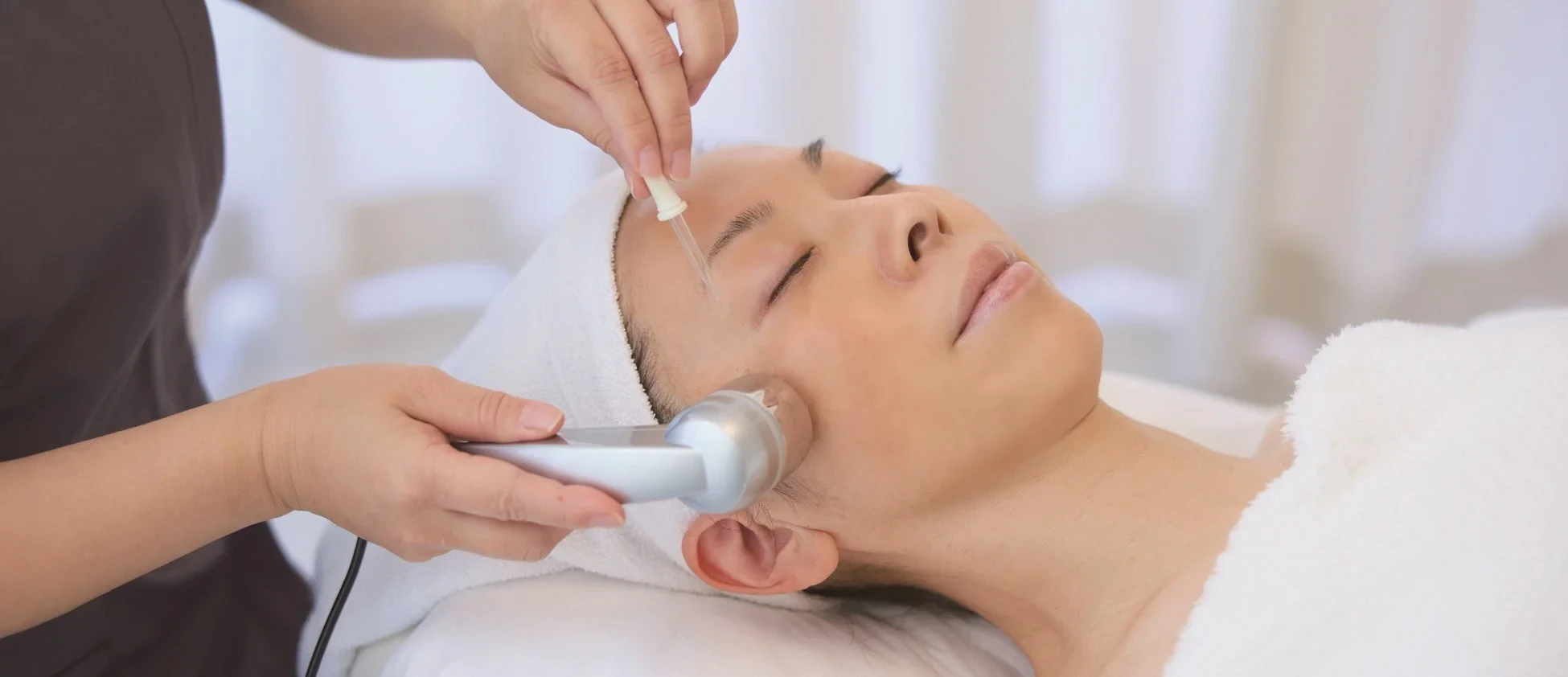 ステップ3はAWAKEN。美容成分が角質層まで浸透するようにやさしくハンドプレスして、肌に輝くようなハリ感を与えるメディテーションです。
